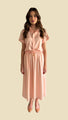 Serena Capri dança em viscose rosa poá leve. Corte clássico, costura francesa, bolsos